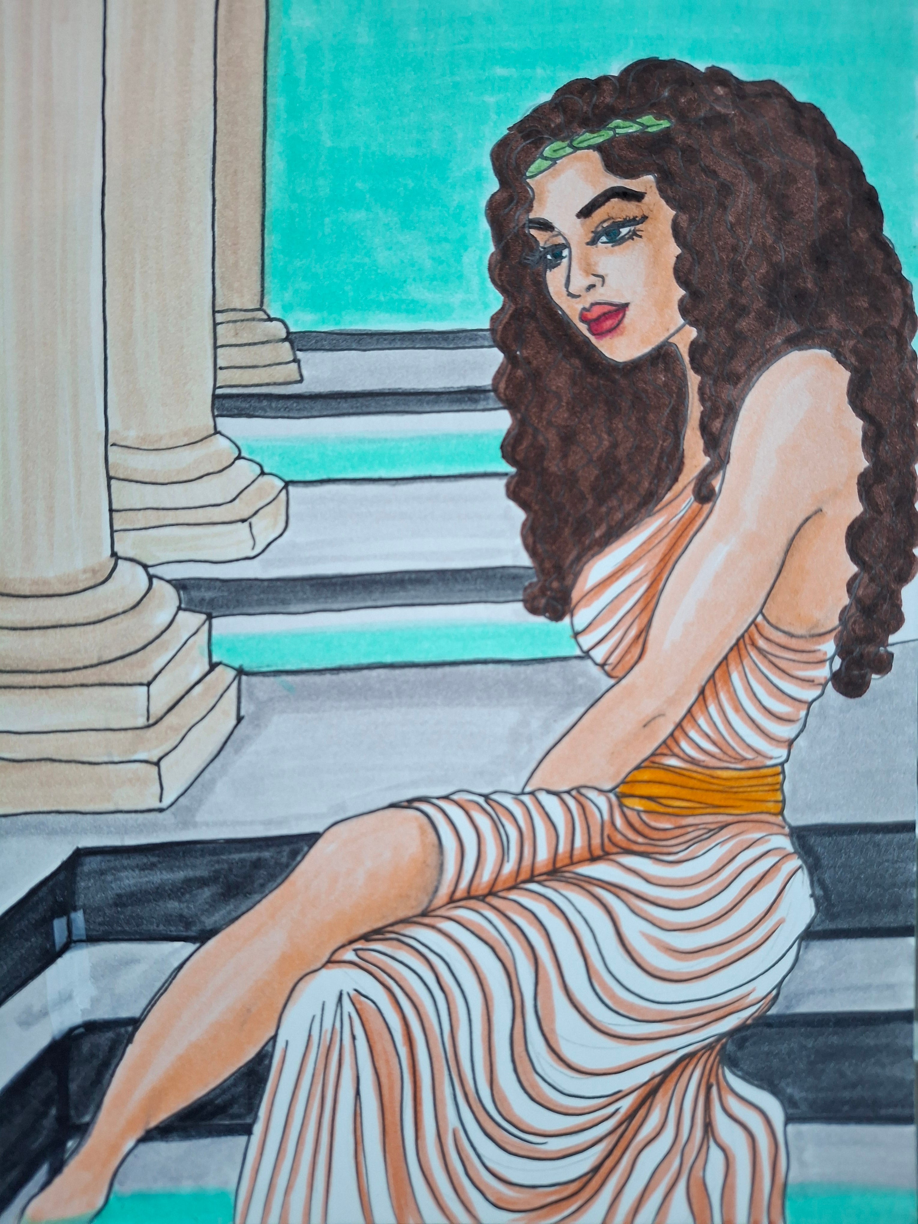 Originally a nymph, she was granted immortality and dominion over fresh water sources by Jupiter. She rules fountains, wells, and purification by water.