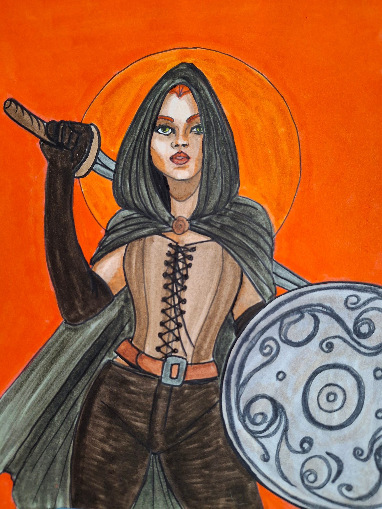 Scáthach (pronounced SKAH-hakh), whose name means “The Shadowy One” or “The One Who Strikes Fear,” is a legendary warrior queen and teacher of warriors in Celtic mythology. She lived in Scotland on the Isle of Skye in her fortress, Dunscaith Castle, where she trained heroes in martial arts, including spear combat.