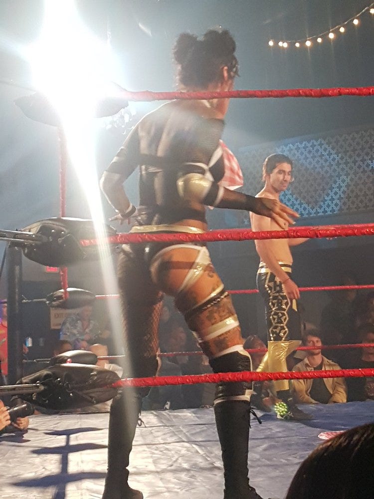 I’ve also attended as an audience member and it is a truly original event combining the camp and chaos of wrestling with the cheese and glamour of burlesque, with a healthy dose of social commentary and local inside jokes thrown in. Here are some more photos: