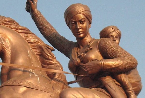 Rani was a leading figure in the Indian Rebellion of 1857 who became a symbol of resistance for Indian nationalists. Statues showing her on horseback with her son tied to her back can be seen all over India.