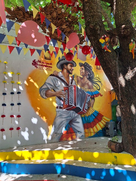 Everywhere we walked, we encountered bursts of color and mythical narratives in the form of public art, a rich backdrop of visual texture under the radiant Caribbean blue sky.