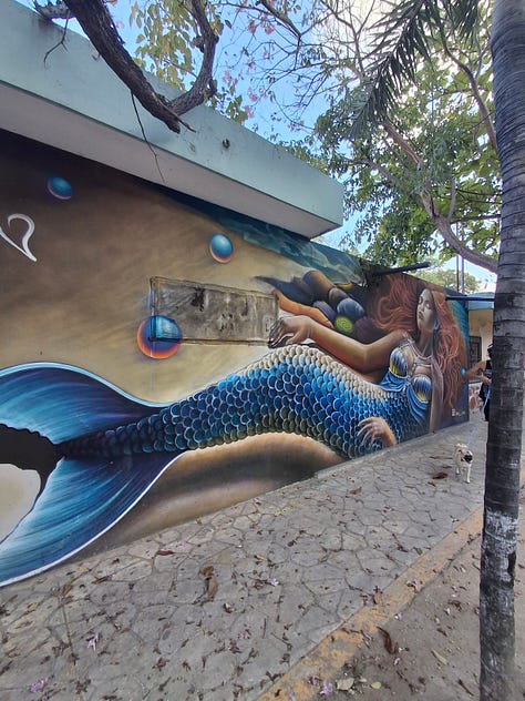 In addition to sprawling by the pool every morning, swimming in the ocean, eating the most amazing fresh foods and walking everywhere with a drink in my hand (Palmar seltzers, 36 pesos, around $3.00 CAD from 7-11… if you know, you know!), one of my favorite things about Mexico was the abundance of public art.
