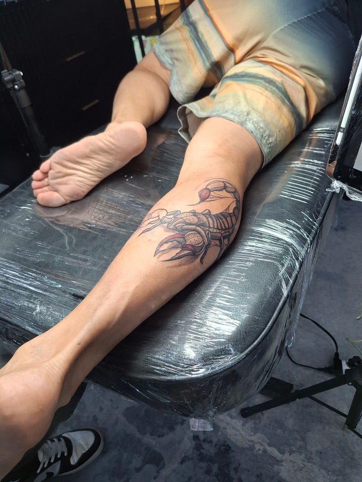 My partner, the Scorpio, chose a beautiful line art depiction of a scorpion to adorn his calf, and I chose a tribal sun (I know, so retro! But that’s how I roll). Now I can carry the sun with me through the rainy months as a constant reminder that my natural state is under its life-giving golden rays.