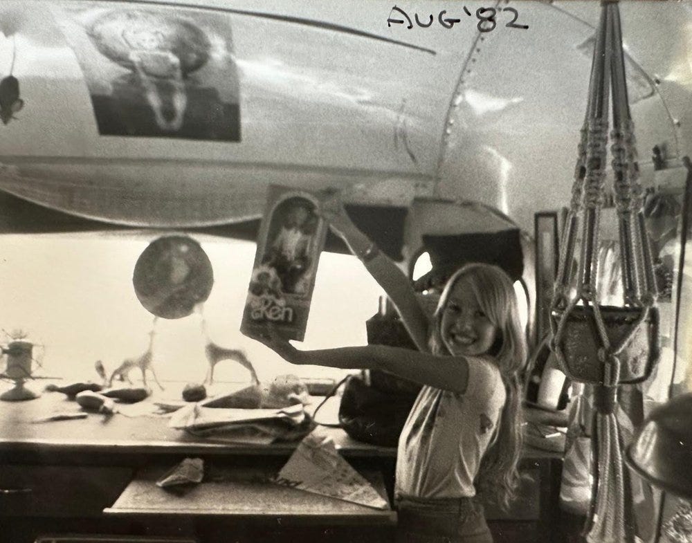 The bus was tricked out with a porta-potty, a small electric fridge and a working Singer sewing machine that my mother and grandmother used to make “portrait dolls” and clothes, which they sold at doll shows throughout the summer.