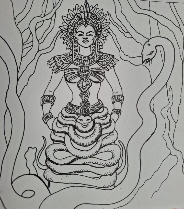 Which brings us to my Inkober/Pinktober drawing challenge. 31 days, 31 badass goddesses, starting with…