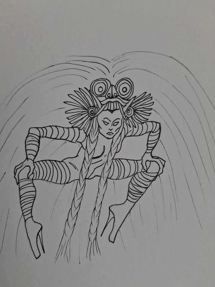 My drawing of Hecate was inspired by the real life badass goddess Melody Mangler, the creator and choreographer of Dreadful Delights among many other Vancouver shows. She is an eternal source of inspiration for me, for her imagination, energy, entrepreneurship and shear superhuman endurance. She’s the busiest businesswoman I know, and a peerless powerhouse of creativity.