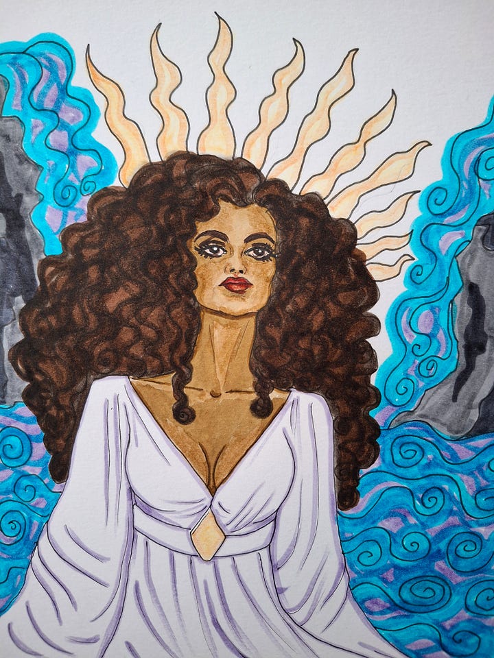 She embodies the flowing nature of water, but also the nourishing rush of fertility and divine inspiration. Her waters cleanse both body and spirit, and drown arrogance.