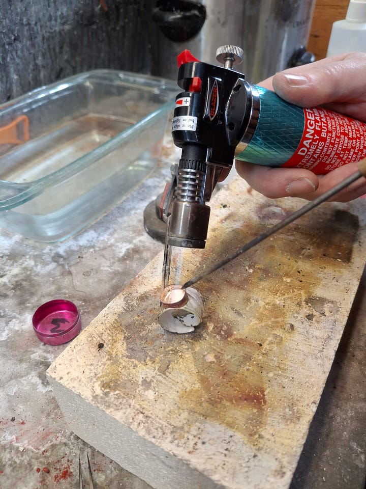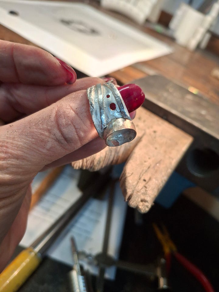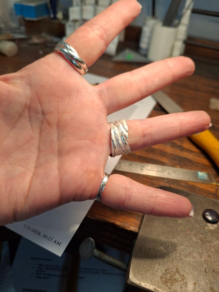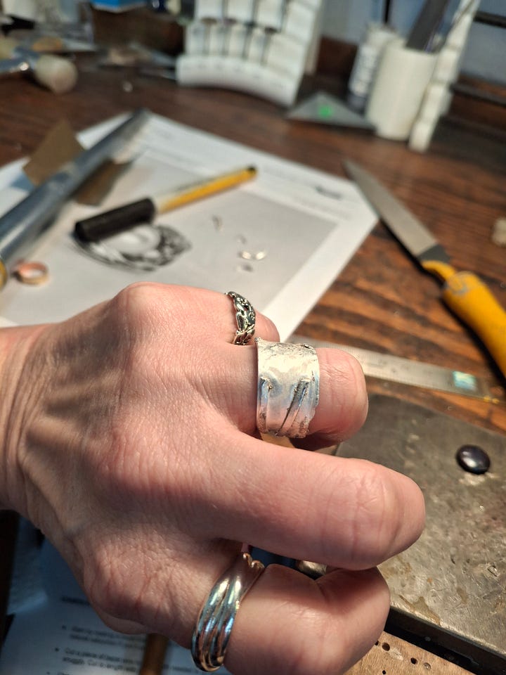 A day of silver smithing, soldering, and sweating over a jewelry bench...