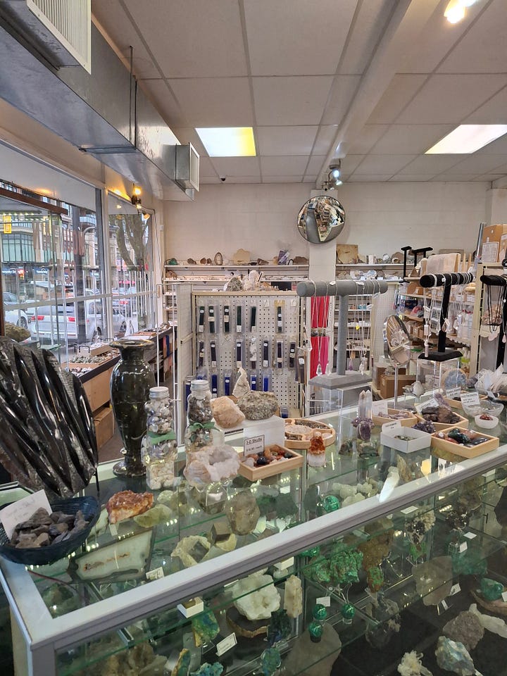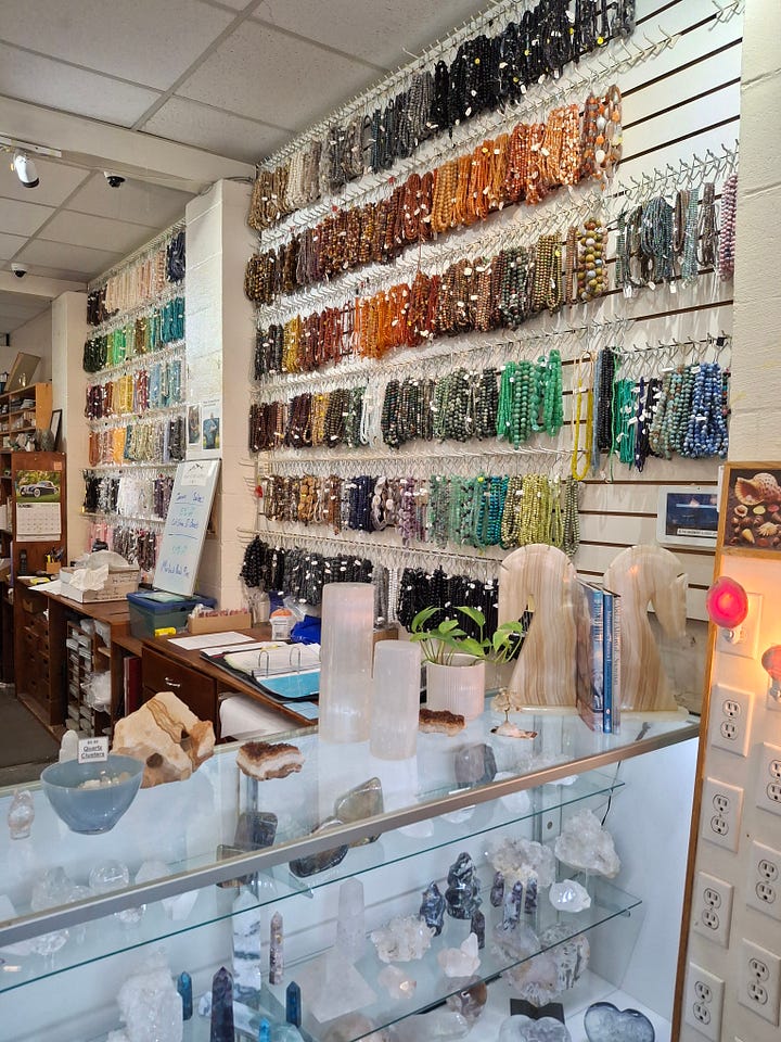 All the individual stones were tantalizingly affordable, tempting one to fill up a bag with random crystal shards and exotic rocks for some undefined future project, or simply to stick in a bowl on your coffee table. Is this an earth sign fetish? I asked my Piscean friend as I stuffed my hands in my pockets to keep them from compulsively touching ALL the things. No, she assured me with a childlike grin.