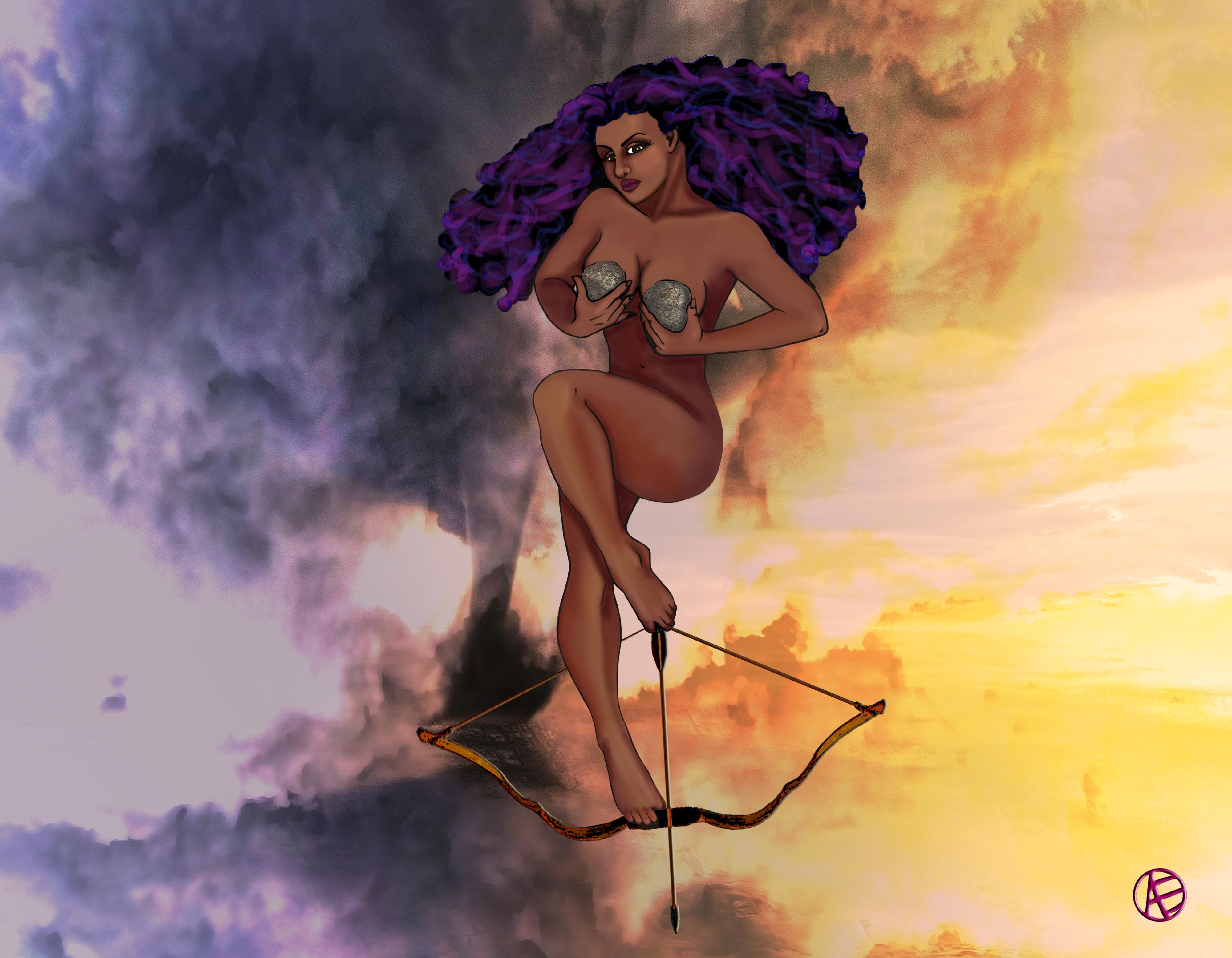 Ayao resides in the forest and commands the elements, especially tornados and cyclones. She is a fierce warrior who wields many weapons, including a crossbow, a serpent, a quill and nine stones.